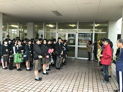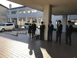 後期生徒会メンバーも前期生徒会に引き続き、登校時に生徒玄関で挨拶運動をしています。稲田生徒会長が立ち会い演説の時に「明るいあいさつができる学校にしたい」と表明し、よりよい学校になるよう何ができるか、生徒会メンバーで検討中です。
