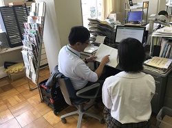 入試で小論文が必要な生徒の個別指導が始まっています。各生徒に小論文担当の先生がつき、昼休みや放課後に指導が行われています。