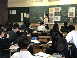 10/29(火)5限目に24H物理の研究授業が行われました。内容は水面波の干渉で、先生が自分で作成したアニメーションを見てイメージを掴んだり、定常波の作図をプリントで行ったりして、理解を深めました。授業後は県教員総合研修センターの指導主事と理科の先生方で、生徒の学びの場面を中心に授業整理会を行いました。