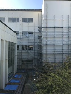 今週から中庭の外壁改修工事が始まっています。