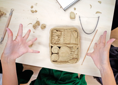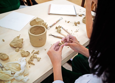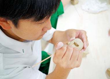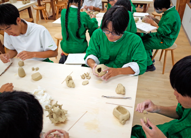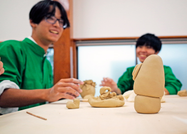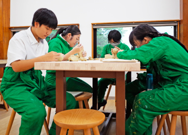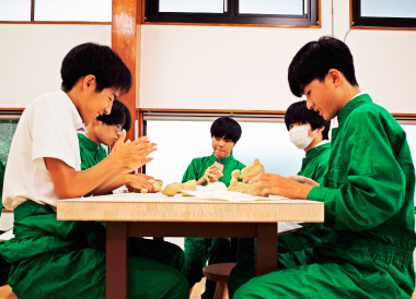 毎年、全国大会の美術工芸専門部では、全国から集まった生徒を対象にその土地の工芸や材料を使用し作品を制作体験する交流をしています。令和9年度の高等学校総合文化祭は石川県で開催されるため、その準備として11月7日、石川県の美術部員同士での制作交流会を金沢辰巳丘高校にて試験的に実施しました。小松市立高校からは2年生の蔵田さんと1年生の西川さんが参加し、制作体験や動画撮影に取り組みました。