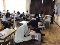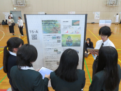この日は学校公開が行われました。生憎の空模様でしたが、それでも多くの保護者の方が授業見学に訪れていました。午後からは2年生の「総合的な探究の時間」の中間発表が体育館で行われ、4月から探究した内容をポスターにして発表しました。