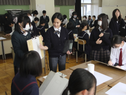 この日、芸術コース体験入学・部活動体験が行われました。芸術コース美術専攻では、デッサンの基礎講座を本専攻2年生が行いました。