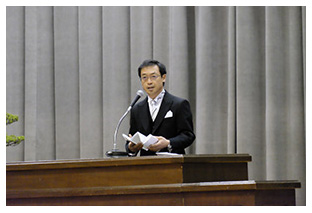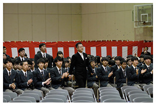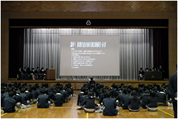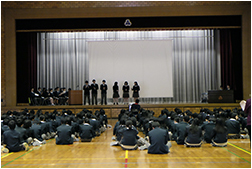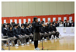 生徒会役員選挙演説会では、次期候補者と推薦者が、