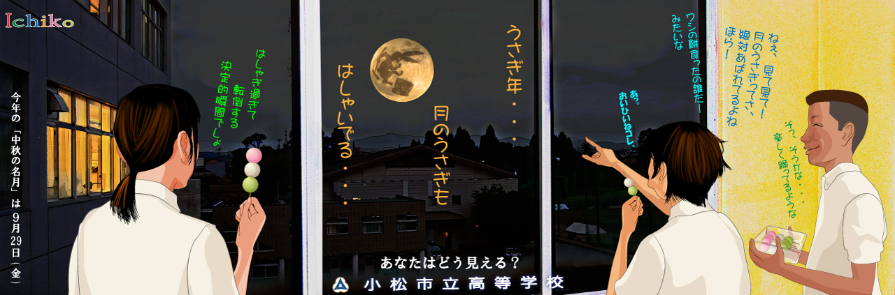 特別棟と教室棟をつなぐ渡り廊下から見る景色は美しく、山のむこうから登ってくる月は感動的です。
