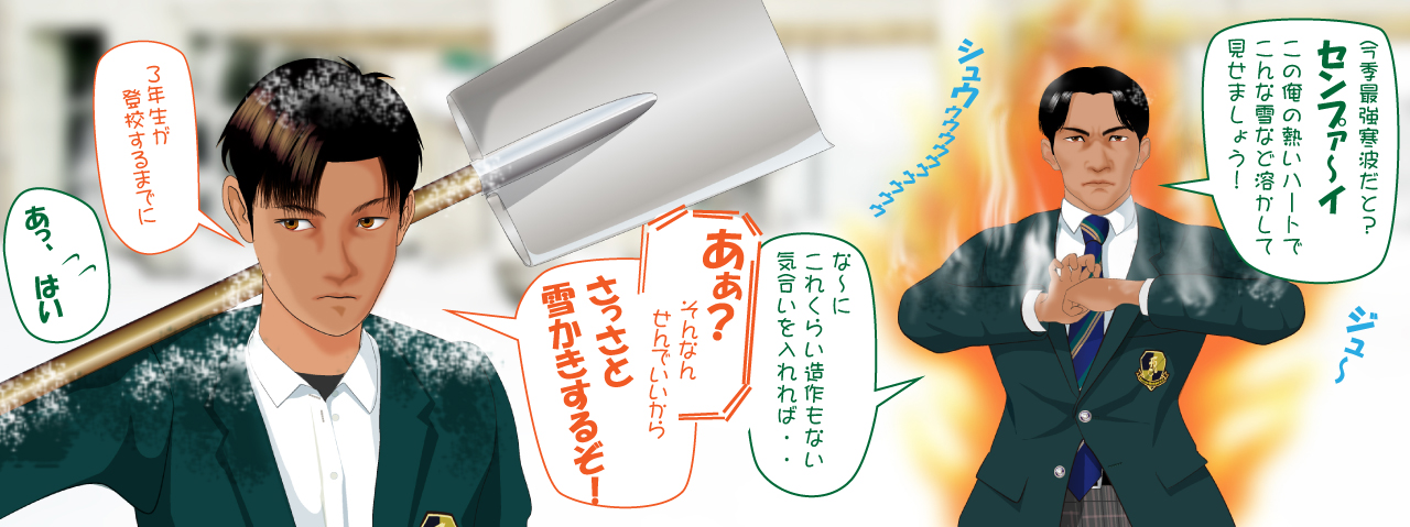 大雪降った時、運動部の生徒たちが雪かきを頑張ってくれます。