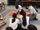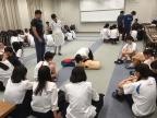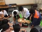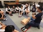 その後、小グループに分かれてAEDの使用を含めた心肺蘇生法の演習を行い、また熱中症対策についての講義をお聞きしました。