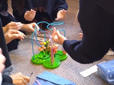 糸を素早く結ぶ方法直伝では、西野さんの指導の下、四苦八苦しながら取り組む生徒の姿に微笑ましさを感じました。