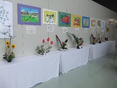 昨日から小松市民病院1階で生け花の展示を行っています。