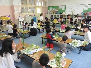 今日は稚松放課後児童クラブの生け花体験のお手伝いをしてきました。
