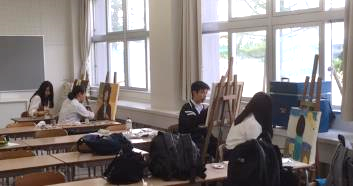 第39回高等学校総合美術展に出品するため、美術部員たちはただいま、作品制作のラストスパート中。