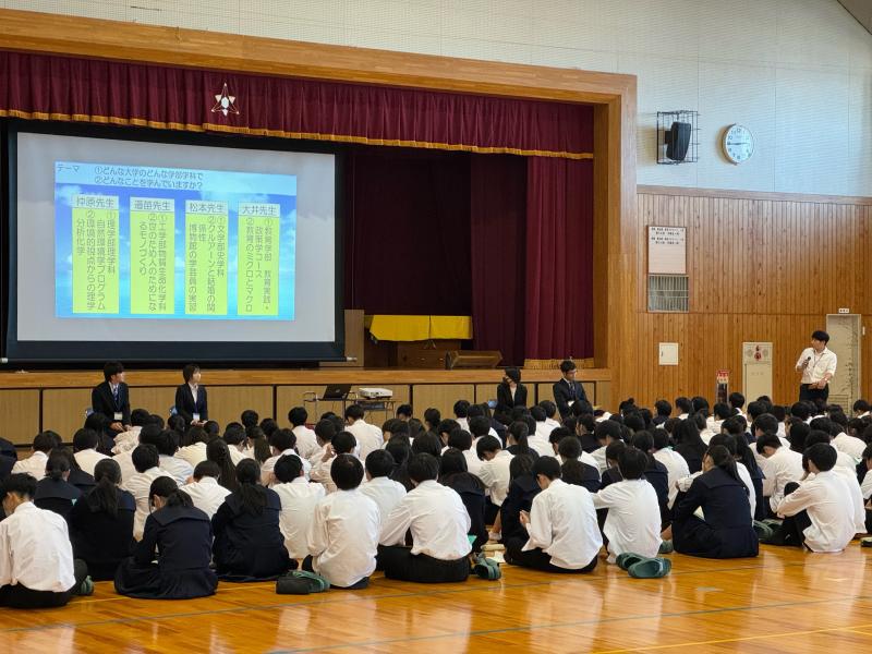 今年度後期の教育実習が10月30日(月)から行われており、4名の教育実習生が現在本校で実習中です。11月1日(水)のロングホームにて上記パネルディスカッションを行い、各実習生の大学での学びや現在の小松高校生へのアドバイス・メッセージなどを語ってもらいました。実習生の皆さんは忙しい中、積極的に会に参加してくれました。1年生各自の進路意識向上と視野や知識の拡大につながっていくことを願っています。