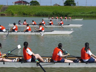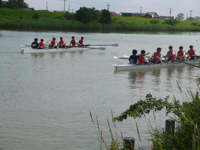 ぎこちないながらも、「キャッチ、ロー!」の掛け声とともにオールを漕ぐ生徒たちの姿を見ることができて