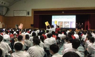コロナ対策で、今年も講堂と教室に分けて行いました。難しい条件でも、生徒たちは工夫を凝らして素晴らしいパフォーマンスを見せてくれました!
