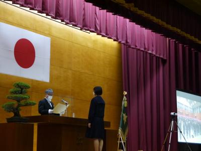 今年は新型コロナウイルス感染症拡大防止のため、代表以外の在校生は出席せず、卒業生と保護者の方のみの式となりました。