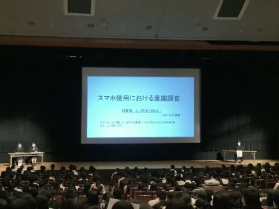 生徒総会では、生徒会長から校則について当事者意識を持って考えることの重要性を説明し、全体の場で共有しました。