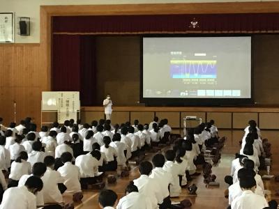 感染対策として午前の部と午後の部の2部構成で実施し,約550名の中学生の皆さんに参加していただきました。