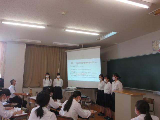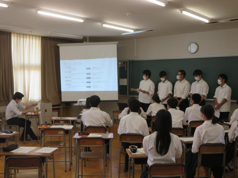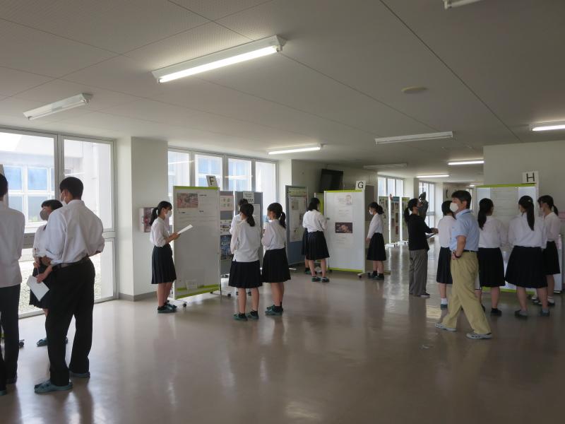4月から進め始めた研究の途中段階を発表する、「テーマ発表会」が行われました。22H,23Hの生徒が対象です。テーマを決めるところから自分たちで行うというのは初めてのため、戸惑いやなかなかグループがまとまらない場面も見られましたが、なんとか本日の発表会までたどり着くことができました。まだまだ研究は始まったばかりです。これからどうなっていくのか楽しみです。