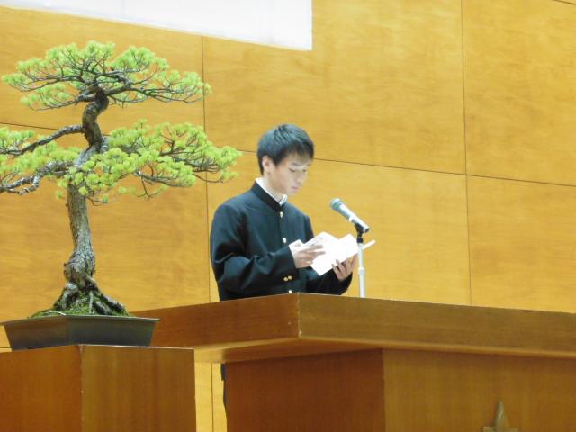 式の中では伝統の生徒清規の朗読も行われました。