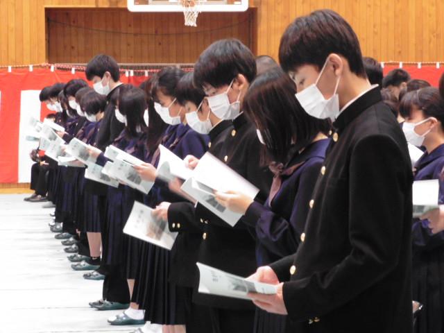 今年は新型コロナウイルス感染症拡大防止のため、代表以外の在校生は出席せず、卒業生と保護者のみの式となりました。式次第も一部変更した形で行われましたが、卒業生の記憶に残る感慨深い式になったと思います。