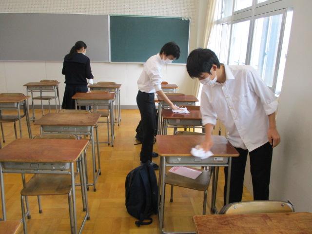 使用した机を消毒して帰宅します