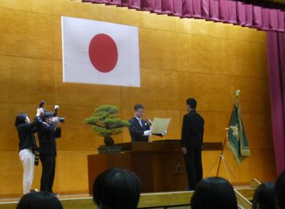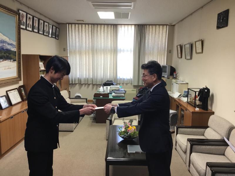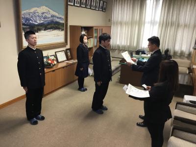 今年の表彰対象生徒は3名で、表彰状と記念品が贈られました。