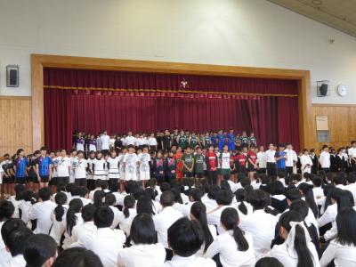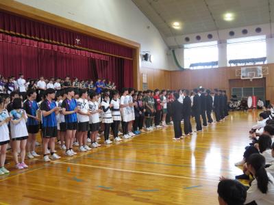 本校では7月10日、体育館にて「部活動壮行式」および「体育祭結団式」を実施しました。