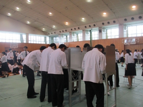 考査終了後、選挙管理委員会の方にお越しいただき、選挙出前講座を行いました。