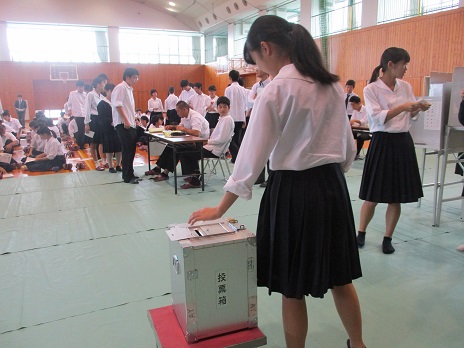 選挙についての説明の後、実際の選挙でも使われる投票用紙・投票箱などを用いて模擬投票が行われました。