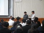 模擬裁判では、場面場面で区切って分かり易く解説を加えて進めてくださいました。なお、傍聴していた生徒たちの判決では、僅差で無罪が多い結果となりました。最後には、質問コーナーとして生徒の質問に答えていただきました。