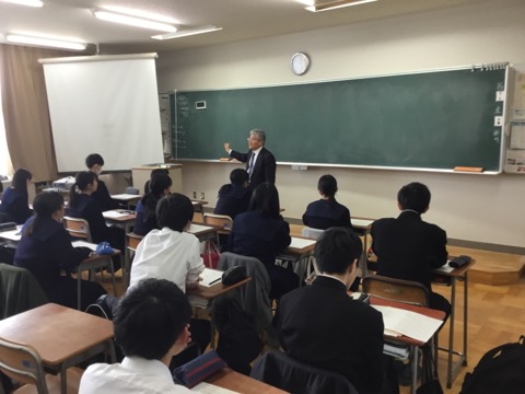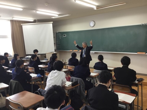 本日五限目に21Hにて小浦校長による特別授業がありました