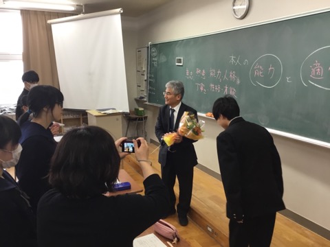 最後に生徒代表から花束の贈呈と退職後の講演依頼?がありました
