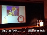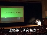 小松市公会堂で平成30年度の文化部発表会が行われました。ステージでは2年生人文科学コース・2年生理数科・理化部・郷土研究部の研究発表や放送部のラジオドキュメントの上映、ESS部のクイズショー、演劇部・吹奏楽部の上演・演奏に観客生徒も集中して聞き入っていました。また、ロビーでは、美術部・文芸部・華道部・生物部の展示があり、休憩時間中などに鑑賞しました。