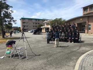 肌寒いですがよく晴れた昼休みの時間にクラス写真の撮影をしました
