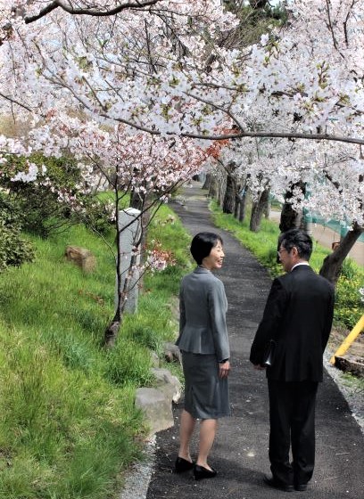 8日の入学式の日、同窓会の東野会長さんと桜並木を歩きました。(ちょうど新聞社の取材もあり、翌日の新聞で青雲の小径の由来も紹介していただきました。)