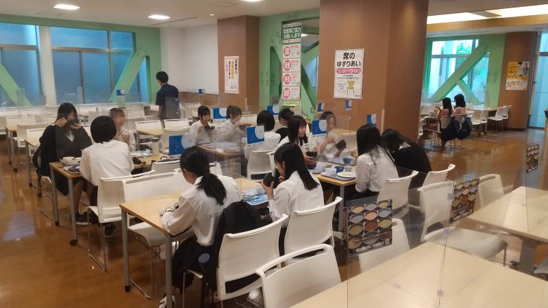 〈大学構内の食堂でお昼ご飯をいただきました〉