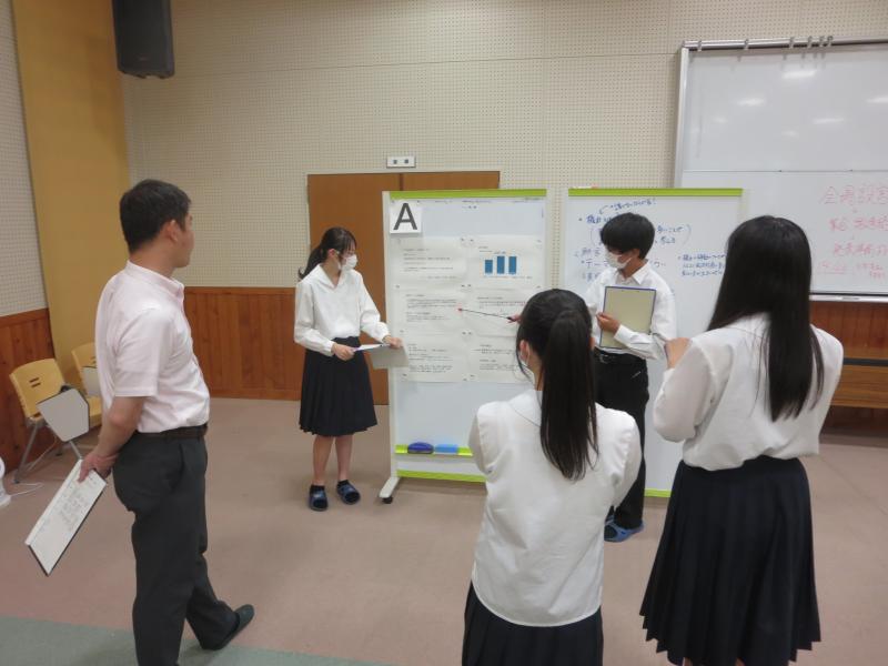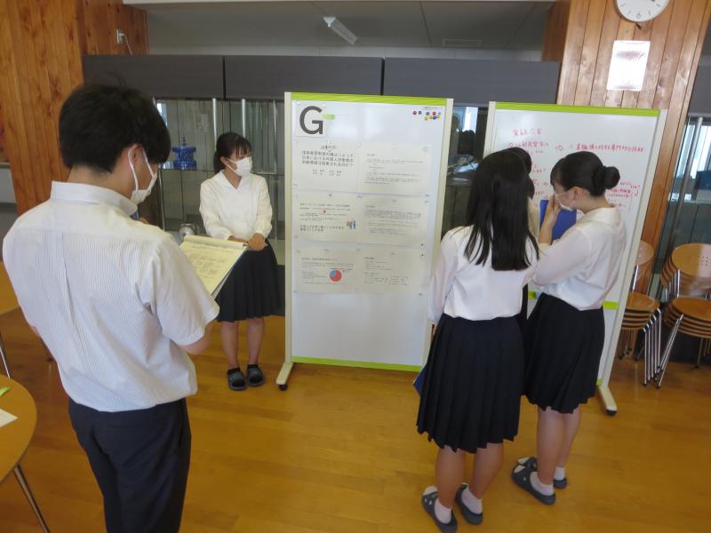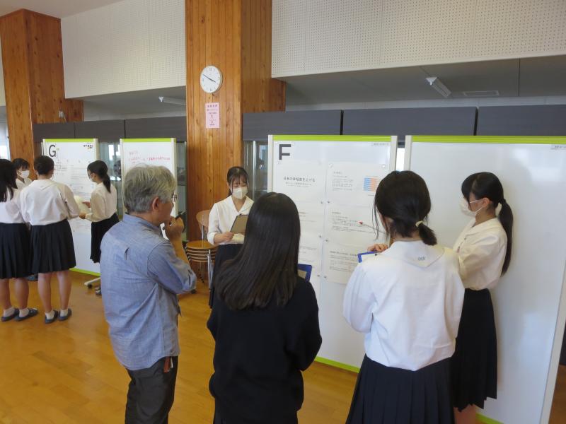 金沢大学の小浦寛先生、福井大学の遠藤貴弘先生、公立小松大学の小原文衛先生、並びに本校教員を助言者に迎えました。ポスターセッションの形式で報告会は行われ、発表者・助言者の双方によって建設的な議論が交わされる一幕もありました。今後の研究がより一層充実したものになることが期待されます。