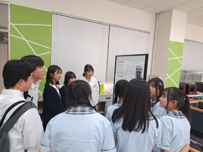 本校の生徒たちは、自己に関するプレゼンと日頃取り組んできた課題研究の成果を発表しました。限られた時間の中で工夫しながらポスターを作成し、英語で発表しました。英語での表現力、コミュニケーション能力に磨きがかかる交流になりました。