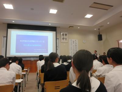 2年人文科学コースの生徒は、現地での注意点や実際の体験談を熱心に聞いている様子でした。