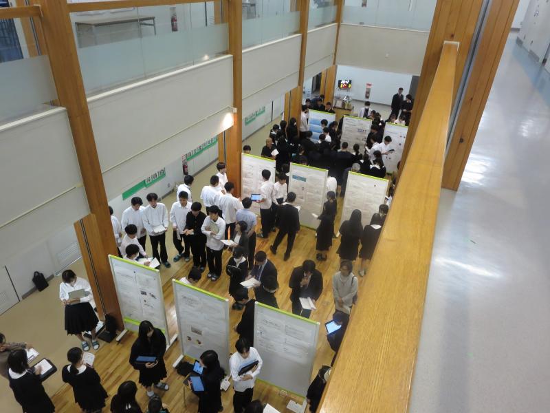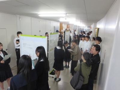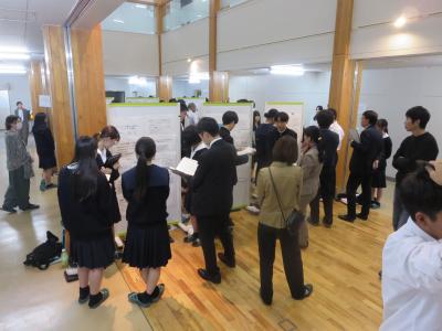 発表者たちがポスター発表を通して、助言者の先生方や参観していただいた本校の先生方、他の生徒と活発に意見を交流し、自らの考えを深める様子が見られました。金沢大学の尾島先生が講評でおっしゃっていた「研究の楽しさ」「わくわく感」を胸に秘め、今後の探究活動に向けて各グループが再出発する大事な日になりました。