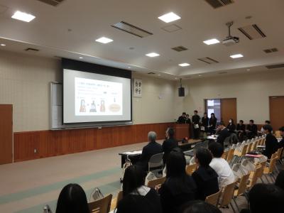 11月2日(土)5・6限に人文科学コースと普通科文系の2年生による「人文科学課題探究(Jゼミ)・課題探究(Kゼミ)合同中間報告会」が開催されました。