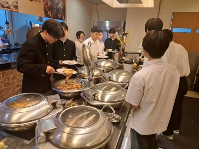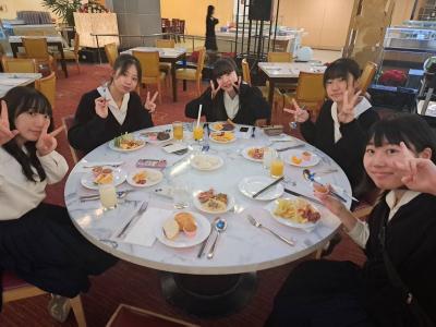 写真は、2日目の朝食のようすです。全員、元気です!