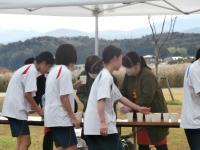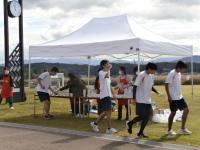 10月21日(木)木場潟公園にてマラソン大会が開催されました。母親代表委員も給水補助で参加しました。コース上西園地、南園地に給水テントが設営され、それぞれの給水場所で走ってくる生徒たちの為に、久しぶりに母親代表委員会のユニフォーム赤いエプロンをつけて飲み物を準備しました。