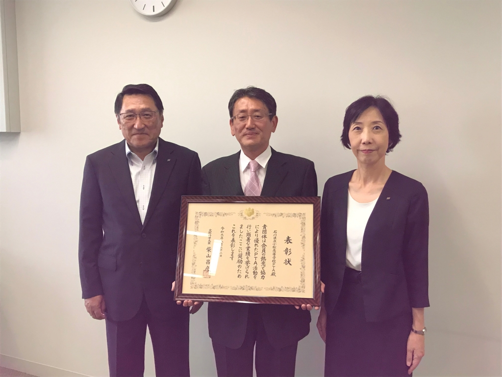 2019年9月4日 09時32分8月22日、第69回全国高等学校PTA連合会大会京都大会にて 支部懇談会をはじめ、各委員会が実施している本校PTA活動の継続した取り組みが讃えられ、優良PTA文部科学大臣表彰を受賞しました。なお、全国で27単P(校)が受賞しています。