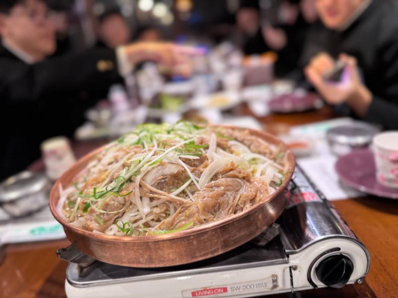 夕方に国立果川科学館を出発し、クリスマスイブで賑やかな明洞を訪れ、プルコギをみんなで食べました。