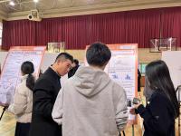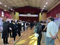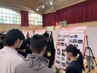 両校の校長先生による挨拶の後、ポスター発表会(DSHS-KHS International Science and Culture Fair)が行われました。クリスマスの装飾に彩られた講堂には、43枚のポスター(うち3枚が両校の共同研究のポスター、4枚が小松高校課題研究のポスターと学校紹介のポスター)が並べられました。生徒達は堂々と自分の研究内容を発表し、質問にも一生懸命答えていました。また、観客としてたくさんのポスター発表を聞きに行き、ハイレベルな内容であっても、理解できた部分を手がかりして積極的に質問をしていました。物怖じすることなく1人で発表を聞きに行って質問している生徒が沢山いて、大きく成長した姿を見せてくれました。