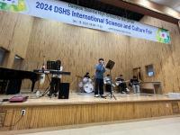 寒空の下、夏に小松で交流を深めた大田科学高校の生徒12名が歓迎の横断幕を持って待っていてくれました。また、オープニングセレモニーでも、大田科学高校の有志の生徒がバンドを結成し、日本の歌を2曲も演奏してくれました。温かい歓迎に生徒たちはとても感激していました。