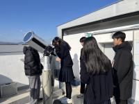 その後学校を出発し、テジョン天文台に行きました。そこでは、天文学に大変詳しい韓国の生徒が案内役となり、解説をしてくれて、天体望遠鏡で金星を観測しました。