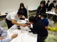 また、小中学生を対象とした実験講座も開かれ、小松高校、藤島高校、泉丘高校、小松工業高校、星稜高校の生徒が主体となって普段から取り組んでいる研究に関する実験ブースを開設しました。参加した100名の小中学生は、高校生から実験の指導を受け、発展的な実験、体験に取り組むことができました。