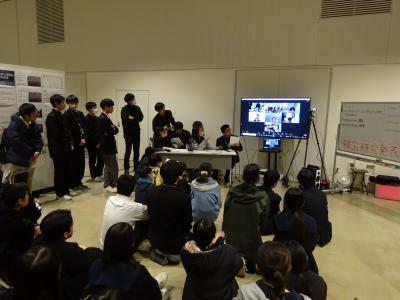 3月17日(日)サイエンスヒルズこまつにおいて「第2回究める課題研究発表会 in KOMATSU」を開催しました。ポスター発表会には、小松高校だけでなく、福井県立藤島高校、大聖寺高校、小松明峰高校、小松工業高校、泉丘高校、金沢大学附属高校、星稜高校、星稜中学校の生徒、計300名が参加し、学校の枠を超えた交流が行われました。また、小松高校が毎年交流している韓国の大田科学高校の生徒もオンラインで参加し、小松高校と大田科学高校の共同研究の発表を行いました。